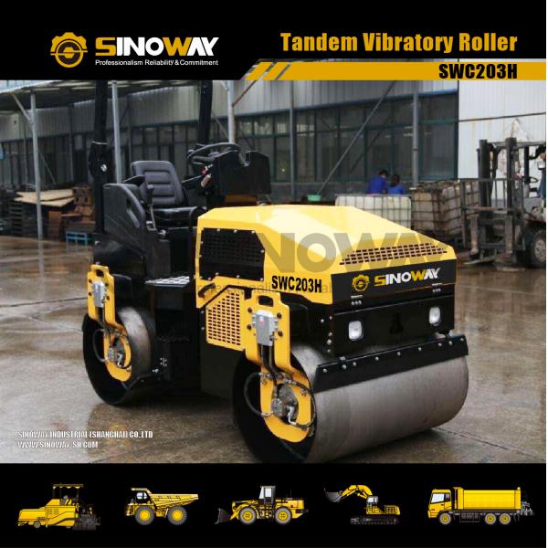 SWC203H hydraulic double drum vibratory roller is small-size tandem vibratory roller, suitable for compaction of various stabilized soils and bituminous concrete on road surface construction, which are ideal compaction equipments for industrial sites such as highway, municipal road mending, sports ground, garden lawn, etc.